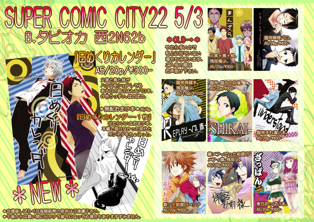 春コミお疲れありがとうでした日記すら手につかぬうちにスパコミですよ私は1ヶ月何をしていたのか