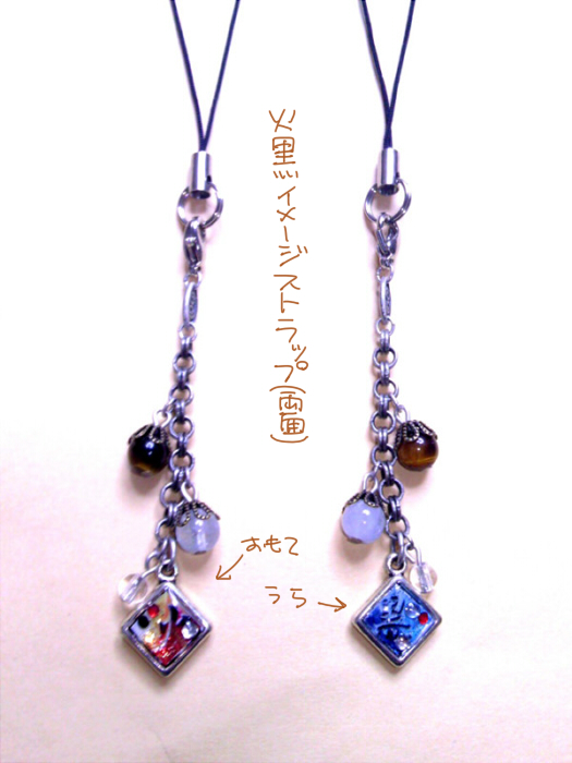石は黒子さんがアクアマリンで火神がタイガーアイ、あと小粒の水晶がついとります。