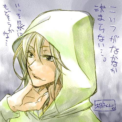 某中国小説の未来の世界的なマンガのキャラ。脇役。頭の色全体的なデザイン等イロイロ考えすぎて一応確定させた今でもまだずっと考えてる。でも表情と性格だけは決まってる。どんなに煮詰めてもこいつだけは主人公呑まない。主人公がいるからこそのこいつの性格。そんな感じ。